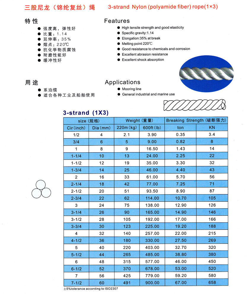 3. 三股尼龍(錦綸複絲)繩