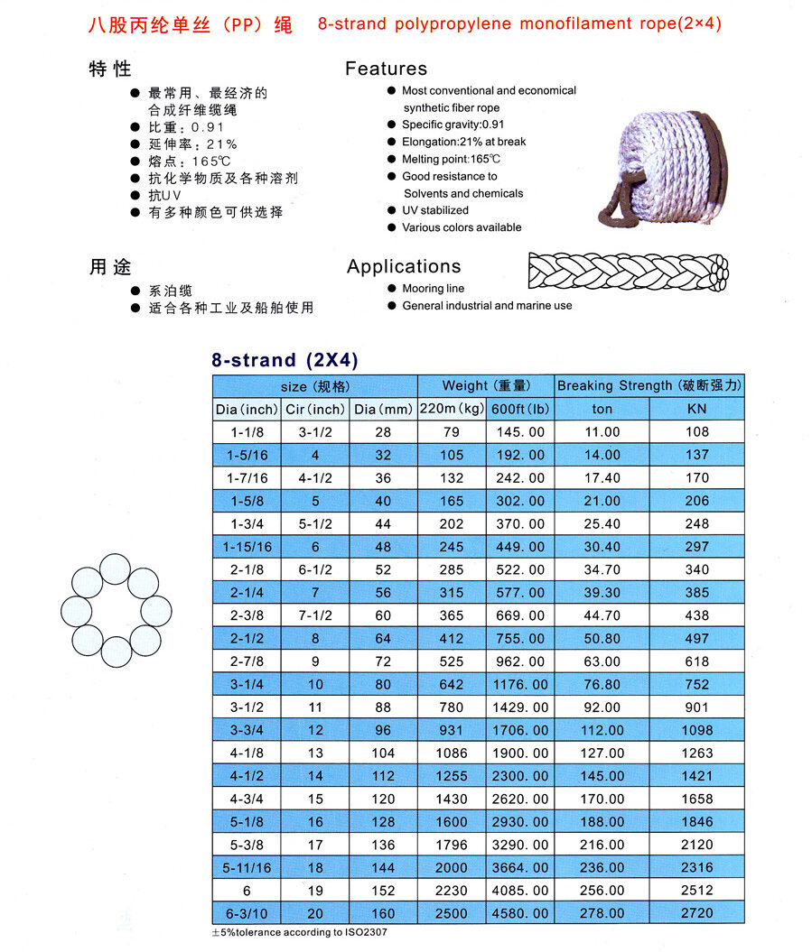 3. 八股丙綸單絲(PP)繩