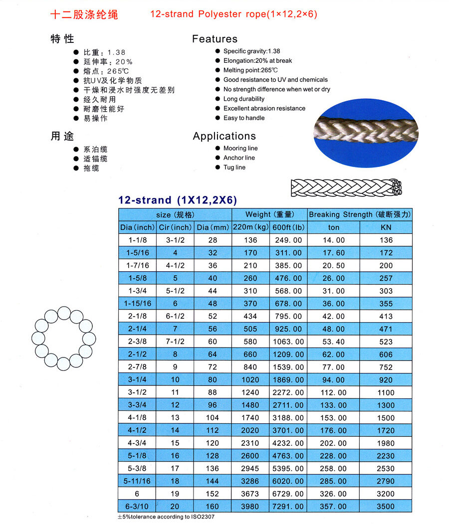 • 十二股聚酯纖維/丙綸繩 十二股聚酯纖維/丙綸繩