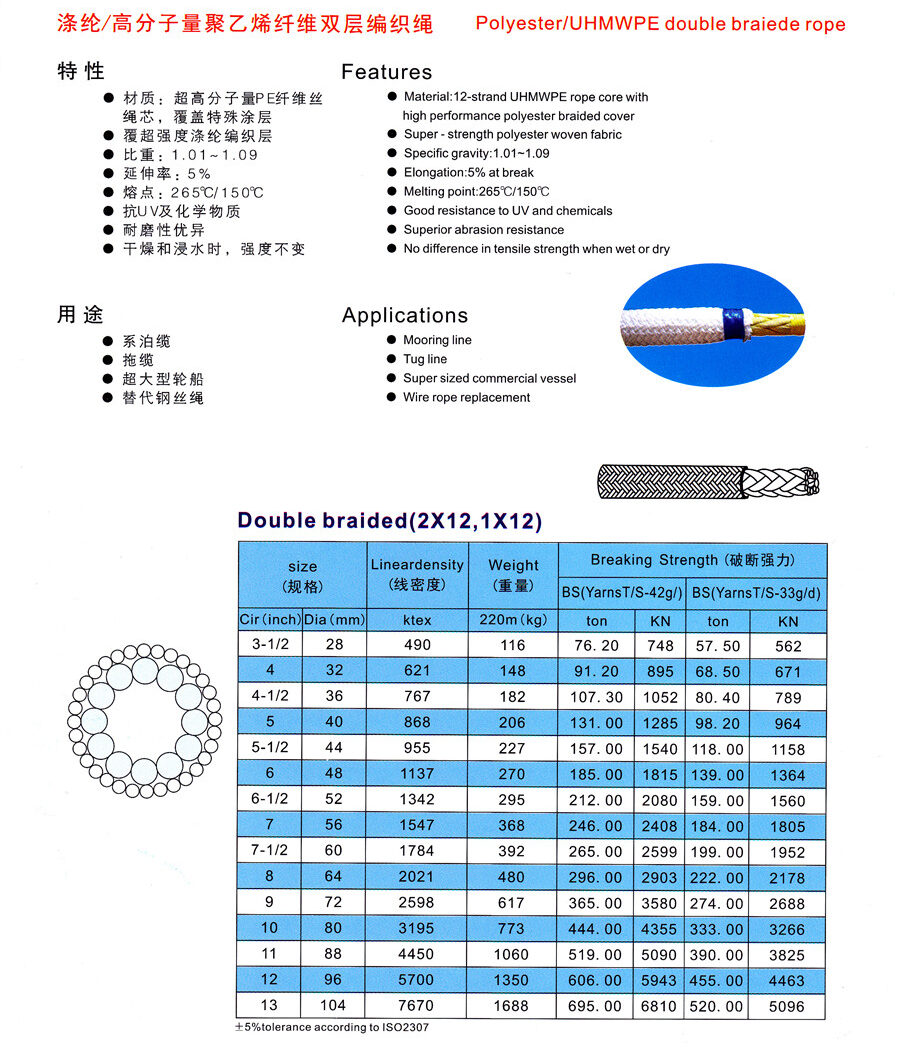 Previous Product Next Product 聚酯纖維/高分子量聚乙烯纖維雙層編織繩 分類: 所有產品, 海洋工程系列, 繩網系列, 船舶系列 描述 描述 相關商品 八股錦綸繩 八股丙綸單絲(PP)繩 纜繩尾